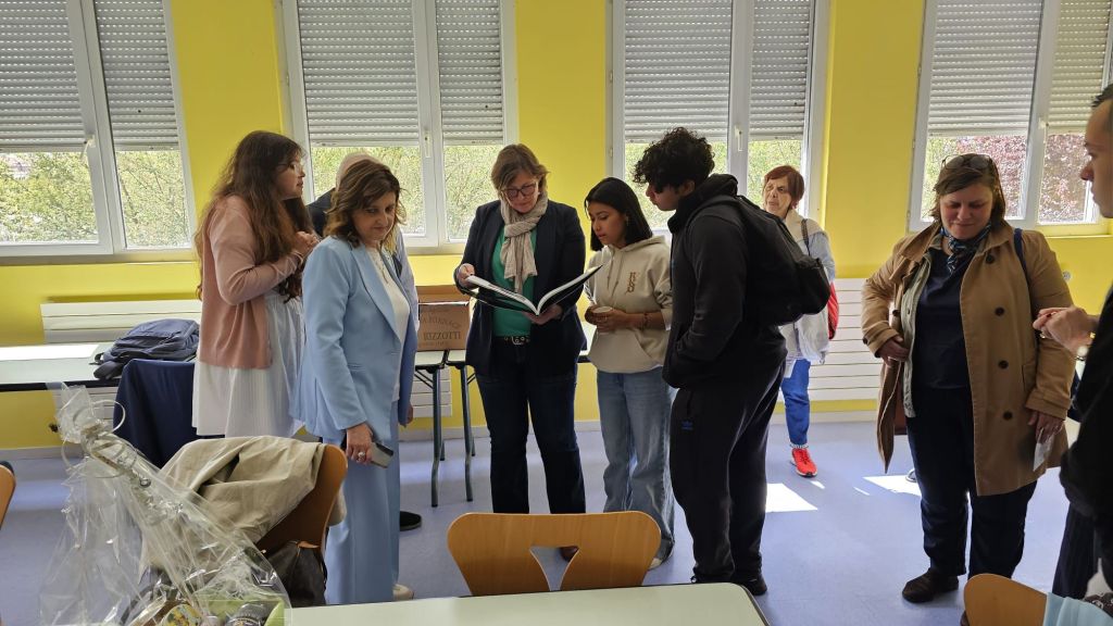 Une délégation italienne de Novara, notre ville jumelle est venue à Chalon du jeudi 22 au vendredi 23 mai . Cette délégation, composée de 4 personnes de la mairie et de 5 personnes de la confédération italienne de l’artisanat, venait pour rencontrer le lycée Jeannette Guyot, avec lequel un projet Erasmus est lancé. 6 élèves des métiers du bâtiment vont partir en stage professionnel à Novara en septembre. L’équipe pédagogique a pu échanger avec nos jumeaux italiens. Messieurs Antoine Lanni, vice-président en charge de Novara et Ezio Romano, conseiller municipal et responsable du jumelage à Novara ont assuré la traduction et le bon déroulement de la journée. Une visite de la bibliothèque et de la mairie avait été organisée et une réception officielle a eu lieu le jeudi après midi. Les italiens ont pu aussi le lendemain rencontrer des professeurs du lycée Emiland Gauthey qui souhaiterait faire un échange avec Novara. La délégation italienne souhaite que des projets éducatifs et même commerciaux se réalisent entre nos deux villes . Voici quelques photos illustrant ces deux journées, riches en découvertes et contacts amicaux.
