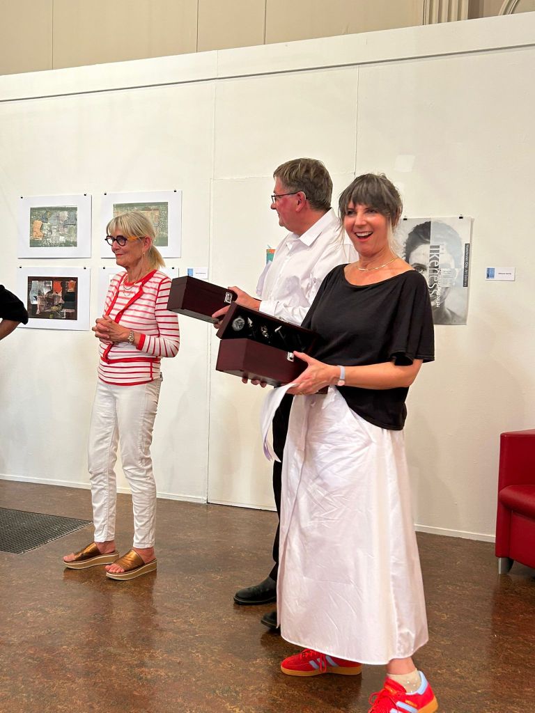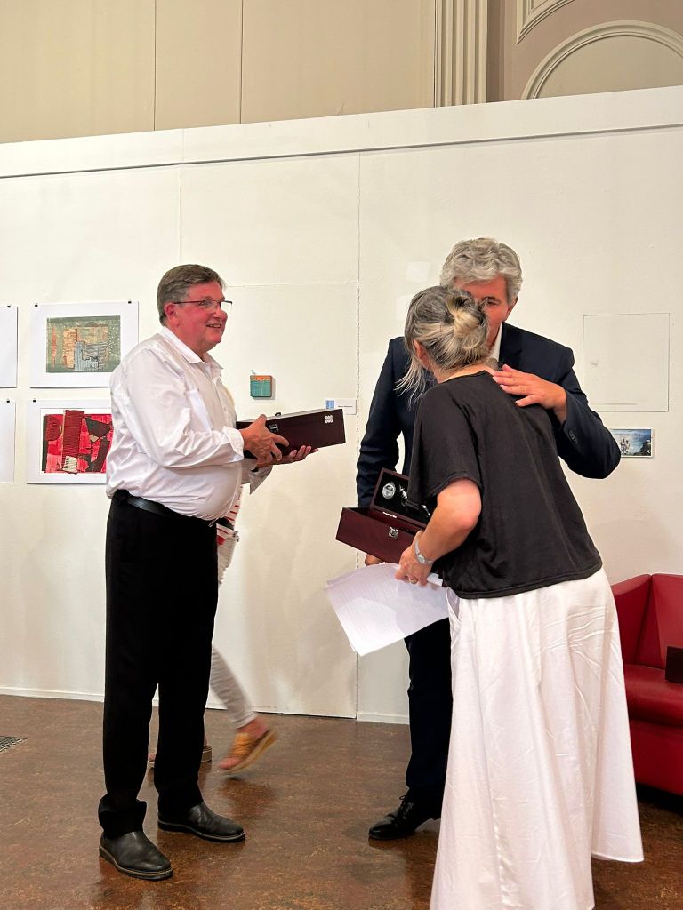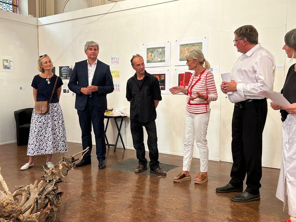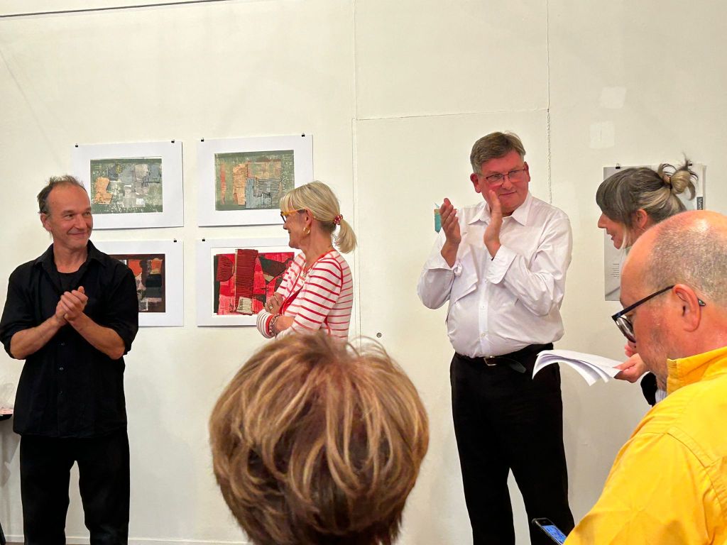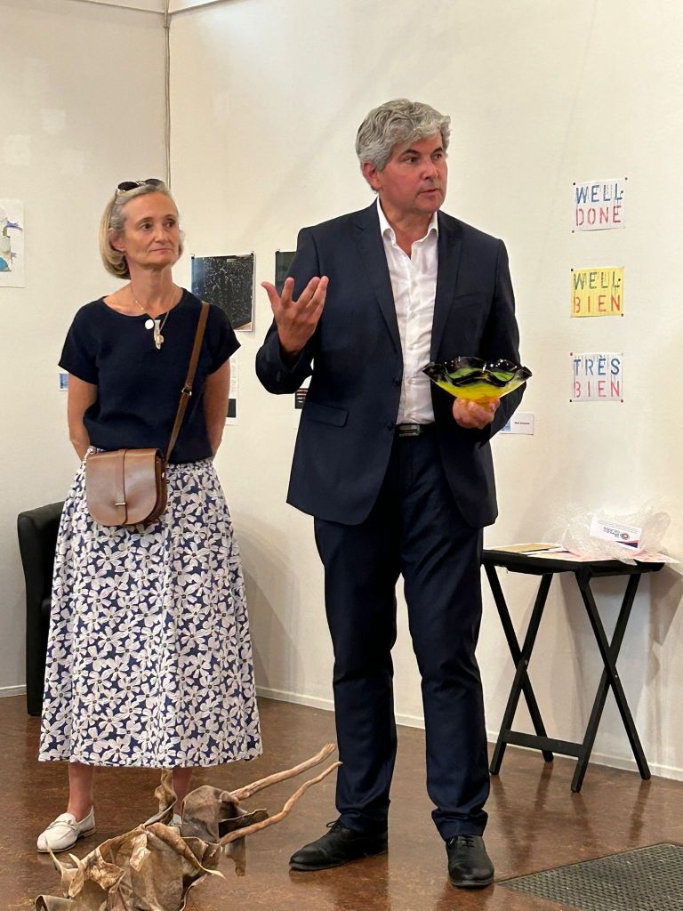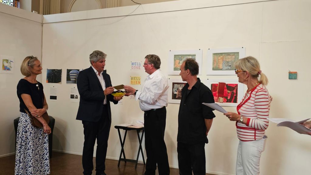 L’association du comité de jumelage et l’association aux arts, etc. se sont associées pour mener à bien un projet artistique qui consiste à exposer des œuvres d’artistes anglais et français. Cette exposition est visible à la Chapelle du Carmel jusqu’au 28 septembre tous les jours sauf le mardi de 14 à 18h . L’inauguration de cette exposition coïncidait avec la réouverture de la chapelle du Carmel rénovée. Ce fut un grand succès, et nous sommes heureux de renforcer nos liens d’amitié, avec Saint Helens notre ville jumelle anglaise . Fiona Stirling, artiste et Andrew Cave conseiller en projets artistiques à la mairie de Saint Helens sont à Chalon depuis dimanche soir et repartent vendredi matin. Ils sont enchantés de leur séjour et envisage une réciprocité avec une exposition et une visite de nos adhérents chalonnais. Why not !