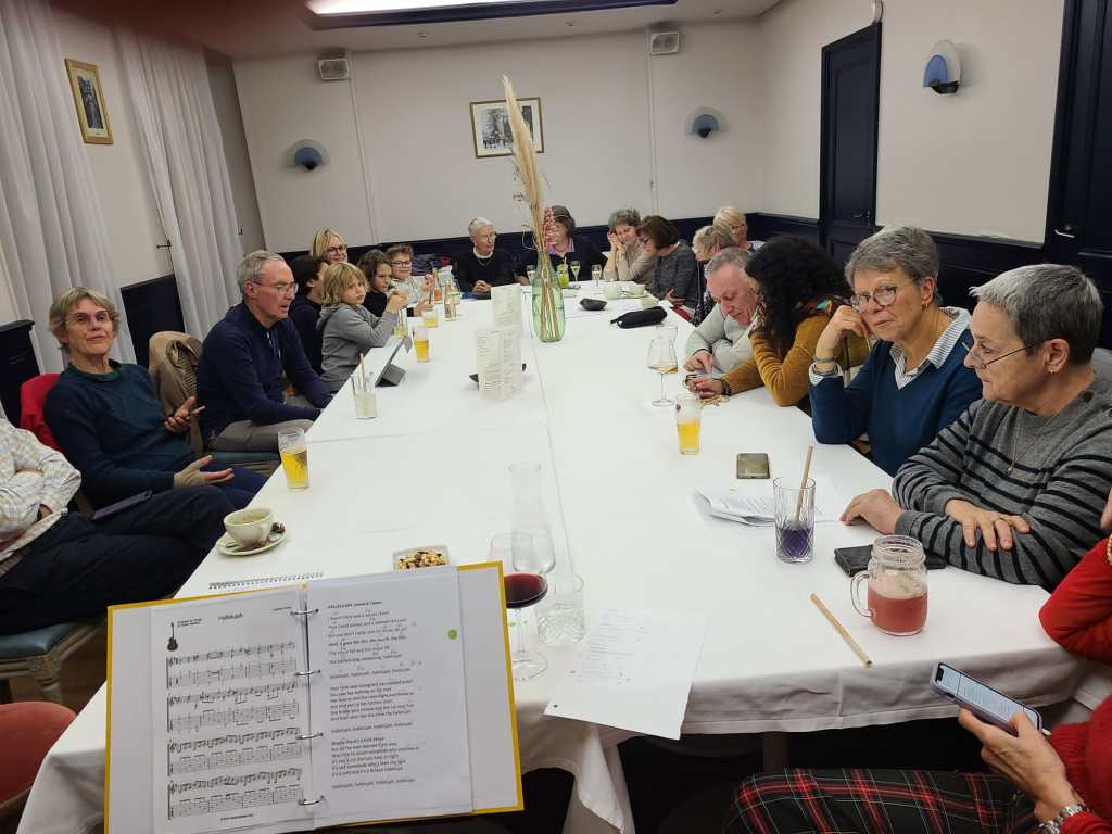 Hier soir 28 octobre a eu lieu notre rencontre : conversation en anglais au St Regis. Mais cette fois c’était une singing session. Jean-Pierre nous a proposé de venir avec sa guitare et nous a fait profiter de tous les vieux standards tels the sounds of silence, halleluyah, yesterday, the boxer, here comes the sun, imagine, somewhere over the rainbow, the girl from the north country etc etc … Les 17 personnes présentes ont accompagné Jean-Pierre et ont vraiment apprécié ce moment convivial et chaleureux. 🎶